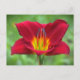 Scarlet Orbit daylily flower contrasts against the green colour of the foliage beyond. Floral image captured at MTBobbins Daylilies in New Hampshire.