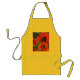 Gold color apron with panel of scarlet poppies on a dark blue background