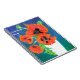 A bright and cheerful spiral notebook with a white vase of scarlet poppies on a blue background, from an oil pastel painting by Judy Adamson.