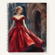 A majestic princess in a red gown stands before an imposing castle. A design that evokes romance and fantasy.