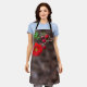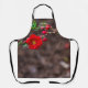 Customizable apron with your name and company name featuring a unique photo featuring some red blooms from a Double Take Flowering Quince bush towards the top of the image. They look a lot like a camellia. During the spring they bloom these beautiful double flowers.
