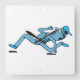 A blue cartoon man with his baseball cap on backwards decides to beat a hasty retreat.