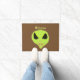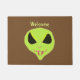 A Doormat with an artwork of a green Alien Face with fangs, with the word Welcome. You can change or delete the word Welcome.