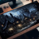 An amazing painting of a creepy, goth-like macabre village at night. Dark, black, cloudy full moon, and just a touch of fog. Make it personal and add your own custom text.