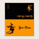 Carte de visite plié ou carte d'appel personnelle en orange et noir arrière - plan avec une sorcière volante d'effroi classique. À l'arrière de la carte, les couleurs sont inversées. Il est facile de personnaliser les deux côtés avec les détails de votre propre entreprise de sorcière ou de magie. N'oubliez pas d'ajouter votre propre URL pour obtenir votre code QR gagnant. Clip art de la composition de Polices Zazzle par Alma Wad Il est livré en 25 paquets.