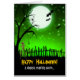 A scary walking skeleton in a grave yard with a full moon and green sky background. Very fun and scary design for your Halloween greeting cards.