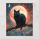 Pictured On A Gnarly Tree Branch In Front Of A Full Moon With Flying Bats In The Background Is A Black Cat With Orange Eyes.