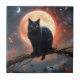 Scary Halloween Black Cat Moonlight, Tile