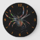 Large Round Wall Art Clock and home furnishing decor accessory with Scary Halloween Metallic Spider And Web artwork design image by TheFabricSeal at Zazzle.com. For this cool looking shiny metal finish spider and webbing, Every Day Is Halloween. Trick Or Treating and waiting patiently for their next prey and sweet tasting meal to get stuck in the strong webbing. Yum Yum.