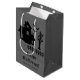 Destei's silhouette design of a haunted house together with three bats, a creepy tree and a crooked fence. There are also two personalizable text areas. The background colour is grey.