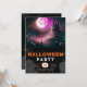 Set the scene for a spooktacular Halloween bash with this bewitching party invitation. The top half features a hauntingly atmospheric Halloween scene, showcasing gnarled, creepy trees, grinning jack-o'-lanterns, and a dramatic gothic full moon. The rich, dark hues of the night sky enhance the eerie vibe, making it a perfect prelude to your Halloween festivities.