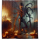 This shower curtain has a scary creature on it.