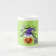 Halloween Scary Pumpkin with a White Kitty and Witches Hat China Mug