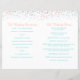 Double-sided graphic art shattered dot confetti in coral and teal on a white background wedding programme. Part of the confetti dot wedding stationery set. Edit these wedding programs with your own name, dates, ceremony wording, wedding party attendants and thanks . Pretty modern program simply replace sample text with your wedding information details and fold programs in half on delivery. PLEASE NOTE you need to ensure your text is not longer than the template text as this may run over the page folding. Modern and romantic wedding ceremony program. © Original art and design by Sarah Trett for www.mylittleedenweddings.com