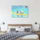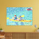 Peinture d'une scène de kayak sur la rivière, faite en pointillisme, imprimée sur des Imprimés en toile enveloppée.