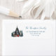 Scène de Noël traditionnelle Retour Nom Étiquette de adresse. Une scène de Noël traditionnelle festive est à gauche avec votre nom de retour et l'adresse à droite que vous pouvez facilement personnaliser.