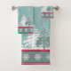 Illustration de scène d'hiver avec la décoration de pins et de flocons de neige sur l'arrière - plan rayé de bleu, rouge et blanc