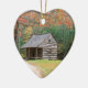 Scene Historic Log Cabin In Smoky Ceramic Ornament