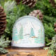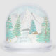 Un globe avec une belle scène hivernale incluant des montagnes enneigées, des verdures, des cabines rustiques et un lac gelé. Le texte peut être personnalisé. Oeuvre originale de W.B.
