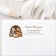 Ajoutez une touche chaleureuse à votre courrier de vacances avec cette belle étiquette d'adresse de retour qui présente une douce scène de la nativité de Marie, Joseph et le bébé Jésus entouré d'ânes doux. Les mots "Bénédiction de Noël" apparaissent au-dessus de votre nom et adresse personnalisés, ce qui le rend parfait pour envoyer des cartes de Noël, des invitations de vacances et des lettres saisonnières à des proches.