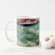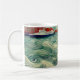 Cette tasse à café présente de belles oeuvres d'art d'une mouette volant au-dessus des vagues de l'océan avec un navire dans l'arrière - plan.