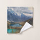 Towel set with a beautiful nature photograph. Featuring snow capped alpine mountains and tranquil ponds nestled inside the valley of these majestic mountains.