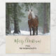 Scenic Brown Horse in a Winter Forest Christmas Wine Label