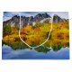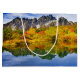 Gift bag with a beautiful country photograph. Mountains of stone with an autumn forest in bright colours. A quiet lake reflects the mountains, trees and grasses.