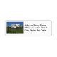 Return address labels for your mailing envelopes featuring a scenic photo image of majestic Mount Rainier and green valley. Personalize your labels by editing text and replacing with your own name and address.