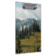 Keep your forms and papers in order at the office with this acrylic clipboard that features a scenic photo image of snow capped Mount Rainier and surrounding scenic landscape in the Pacific Northwest state of Washington. You may customize your clipboard by adding personalized text if desired. Image printed on both sides.
