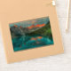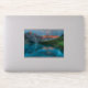 Contour sticker with a beautiful photograph featuring a beautiful mountain range, grey and rust colours. A green lush forest surrounds a calm clear lake. Gorgeous outdoorsy image.