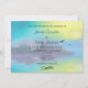 A pastel coloured scenic landscape with mountains and and a spruce trees in the background and a turquoise lake glowing yellow with the suns reflection. A few birds can be seen flying off in the distance. Customize with your own wedding details.