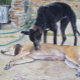 The two dogs subjects on this jigsaw puzzle are my brother in laws elderly greyhounds, sadly the dogs have since passed on, but they were the best of friends and this tender painting was produced from a photo that was taken on a very warm summer day in my in laws yard, Sandy was very hot and decided to have a rest, Winnie wanted to help her cool down by giving her a refreshing all over lick, it must have helped because Sandy fell asleep almost instantly. I named the original soft pastel painting "Best Pals On A Summer Day." I hope you enjoy piecing together this original animal art jigsaw puzzle as much as I enjoyed painting it.