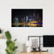 A scenic cityscape. The singapore skyline at night with many highrise buildings brightly lit with their colourful reflections illuminating the picturesque waterfront along the Singapore river.