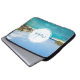 A laptop sleeve with a beautiful photo featuring a tropical beach resort.