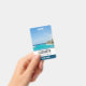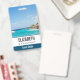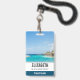 Personalized name badge with a beautiful photo featuring a tropical beach resort.