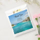 Favour bags with a beautiful photo featuring a tropical beach resort.