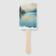Scenic Watercolor Pine tree Lake Program Hand Fan