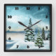 Scenic Winter Wonderland Watercolor Painting Square Wall Clock