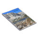 Beautiful Lake Marie lies nestled at the base of majestic granite mountain peaks high in the Snowy Range of the Rocky Mountains in southeastern Wyoming. This photograph was taken in early autumn before new snow, and shows the huge peaks silhouetted against a bright blue early fall sky. The forest of pine and spruce trees runs down to the lake at the distant shore. In the foreground, the rocks make a pretty frame. The text is customizable. Photograph by Debra Mickelson.