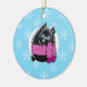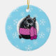 Cute winter theme with snowflakes and warm polka dot scarf compliment this original drawing of a Schipperke. Cute gift idea! Click the orange "customize it!" button to add text to the back, such as a pet's name, to create a truly one-of-a-kind-gift!