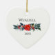Schipperke Silhouette with Name Poinsettia Ceramic Ornament
