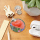 Eine grosse, herzförmige Mohnblume neben einer kleinen Mohnkapsel vor Wiesenhintergrund mit blauen Kornblumen ist auf diesem Schlüsselanhänger.