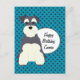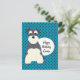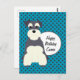 Cute Schnauzer dog with black and blue polka dot background and centre customizable birthday text