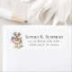 A refined address label featuring a light grey schnauzer holding an American flag, combining timeless elegance with patriotic charm, perfect for dog lovers who appreciate classic style. Perfect for 4th of July celebration invitations.