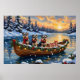 Bring spirited, bearded charm to your holiday season with this adorable Schnauzer Christmas design! This magical scene features three alert, whiskered Schnauzers (whether Miniature, Standard, or Giant) sitting attentively in a cozy wooden boat, gently floating on a serene snowy lake at sunset. The boat is beautifully adorned with glowing Christmas string lights and fragrant pine garlands, while the dogs wear festive scarves. They are surrounded by colorful wrapped presents and cheerful holly branches. Soft snowflakes gently fall, and the shimmering reflection of the lights on the water creates a truly magical winter holiday atmosphere. This design is a perfect Christmas gift for any Schnauzer owner, dog lover, or admirer of festive and unique terrier-type art, capturing the serene joy of the season.