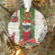Schnauzer Dog Christmas sitting outside decorated home with Christmas wreath, Christmas tree is a perfect Christmas gift idea for dog lovers.