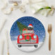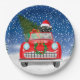Schnauzer Dog Driving Car In Snow Christmas Paper Plate