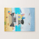 schnauzer dog Driving on Beach Jigsaw Puzzle