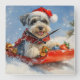 Schnauzer Dog in Sledge Let it Snow Christmas Square Wall Clock